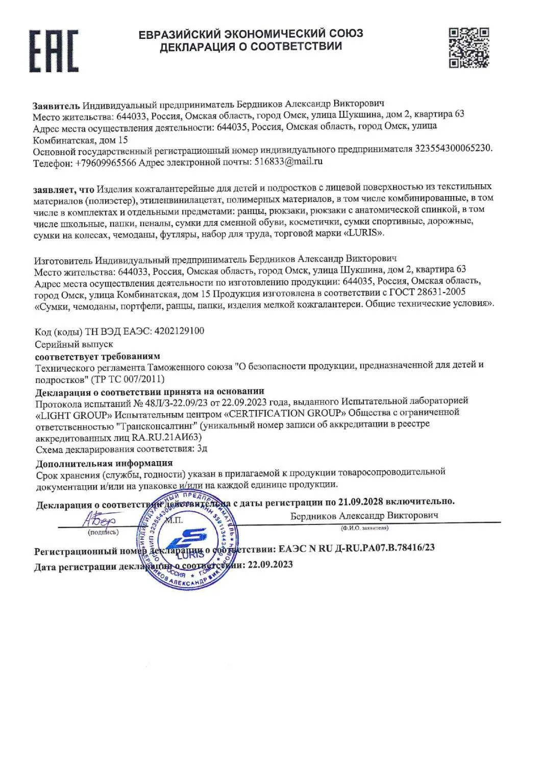 Декларация о соответствии